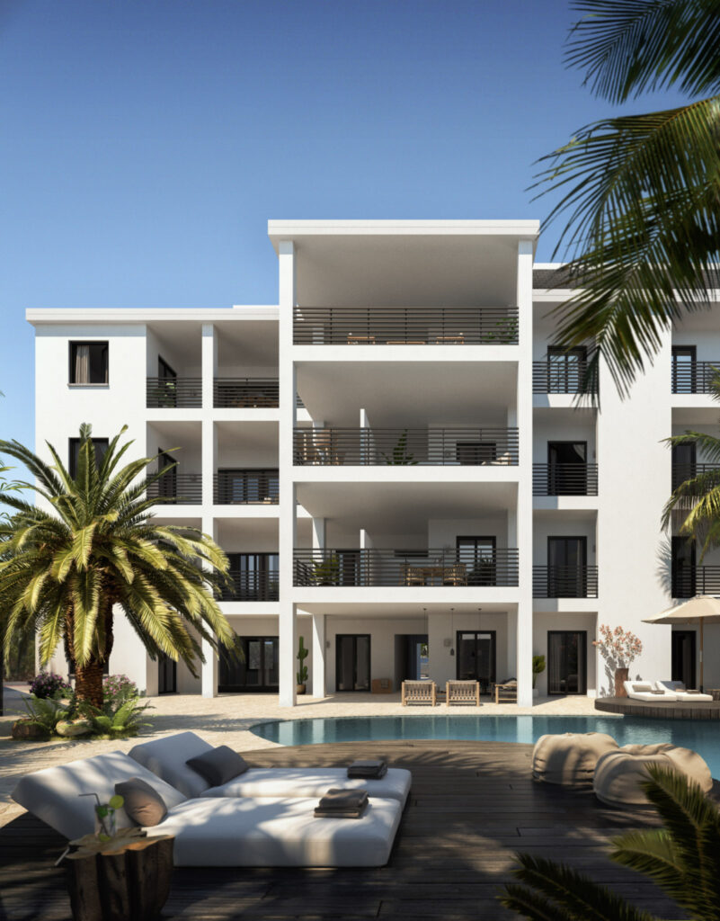Een ontwerp voor projectontwikkeling van een complex met 14 luxe appartementen en een penthouse op het eiland Bonaire. Direct aan zee en op loopafstand van het gezellige centrum van Kralendijk.