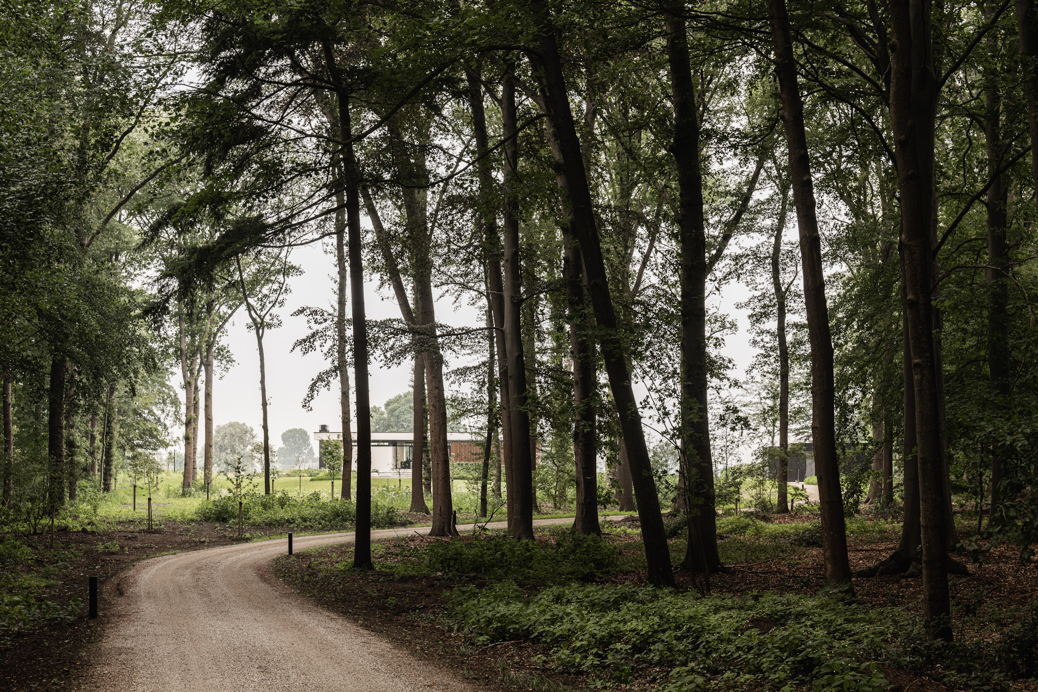 Het bijzondere aan dit project is zonder meer de locatie; de woning ligt midden in het bos. Op de oprijlaan duikt tussen de bomen de woning op en ontvouwt een wijds uitzicht over de rivier en de uiterwaarden. Een soort stilleven met voorbijvliegende ganzen en grote binnenvaartschepen die langzaam aan het huis voorbijvaren en uitnodigen tot verstilling.