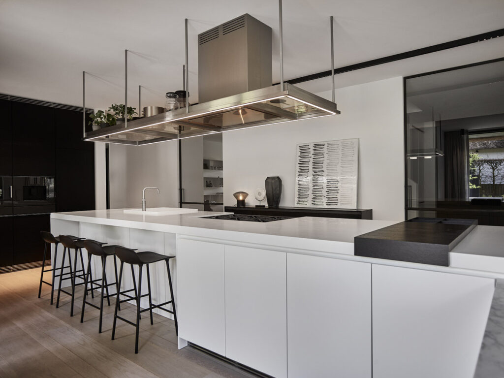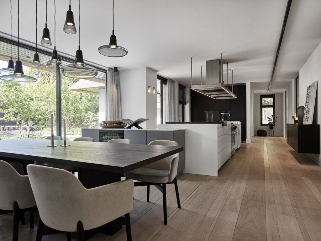De routing in het huis is belangrijk. De belijning stelt de keuken als middelpunt. Alle overige ruimtes zijn hieromheen gebouwd.
