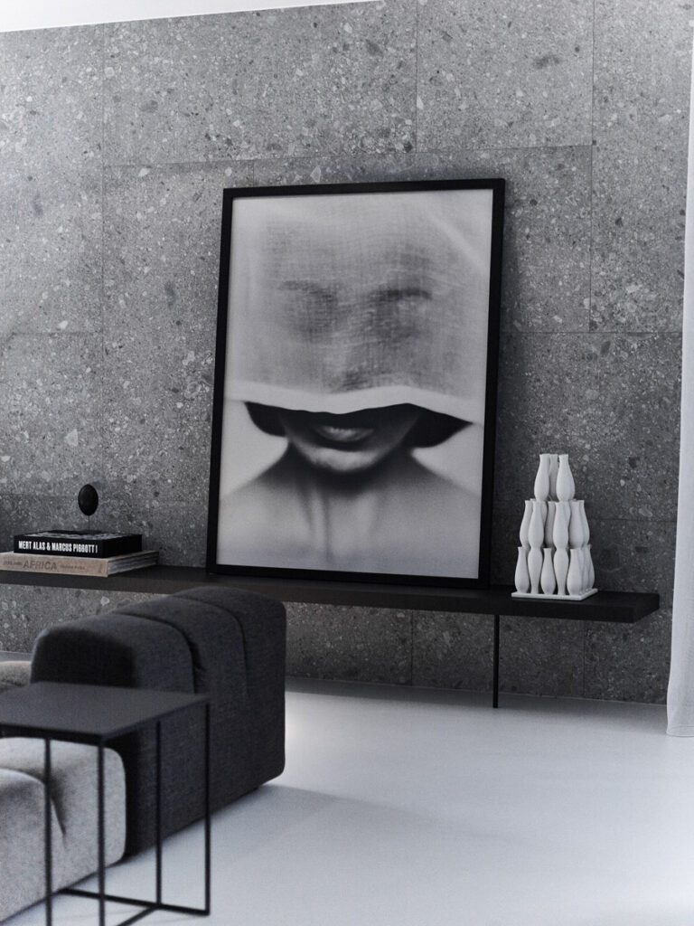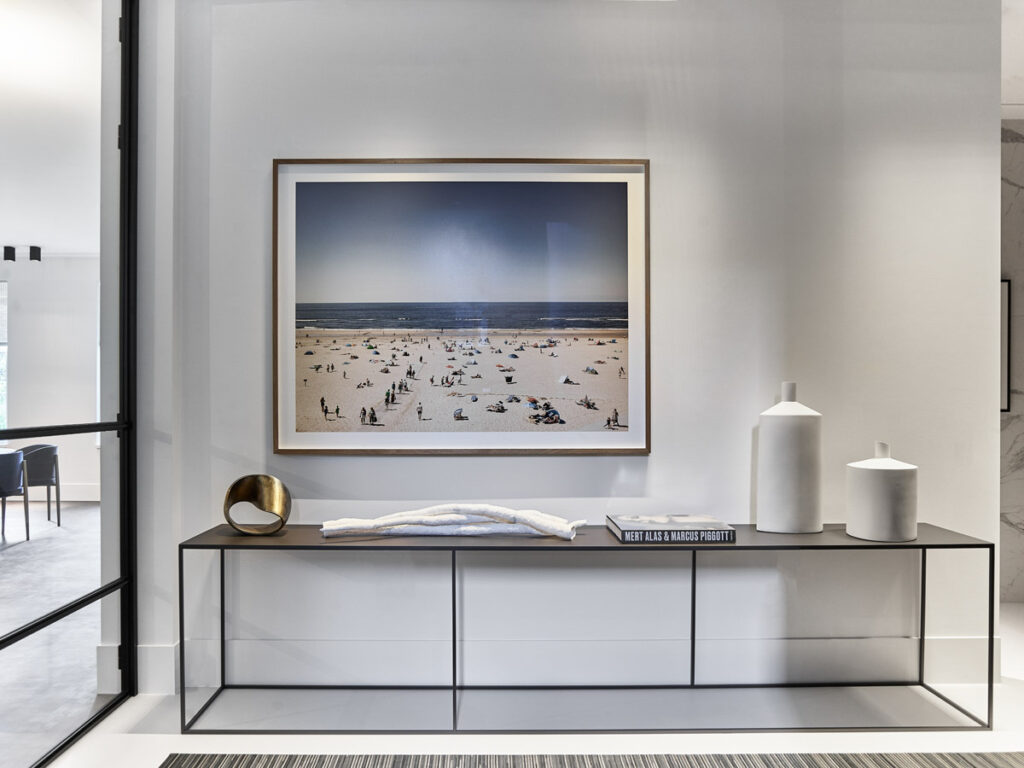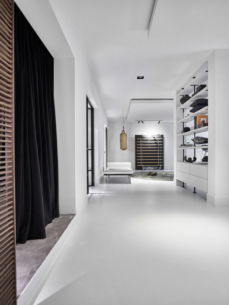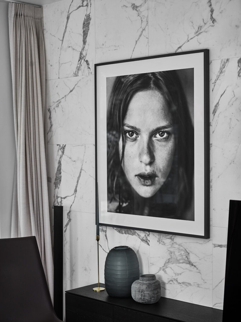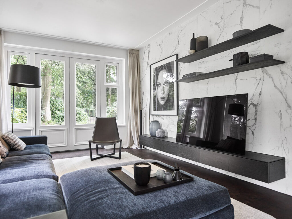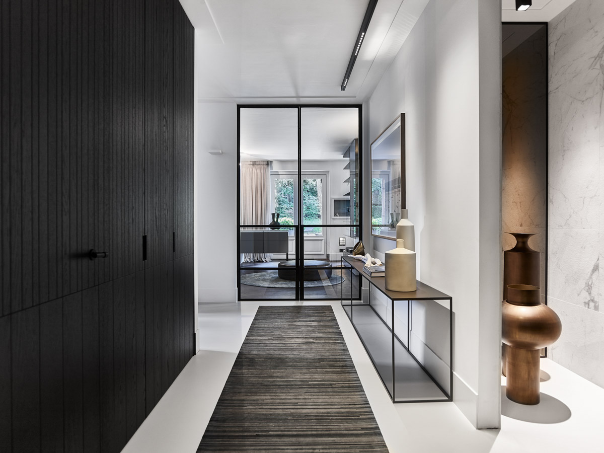 In de woning is veel gebruikt gemaakt van strakke lijnen. De speelse elementen in het meubilair, de kunst, raambekleding en de subtiele kleuren maakt alles tot een warm geheel.