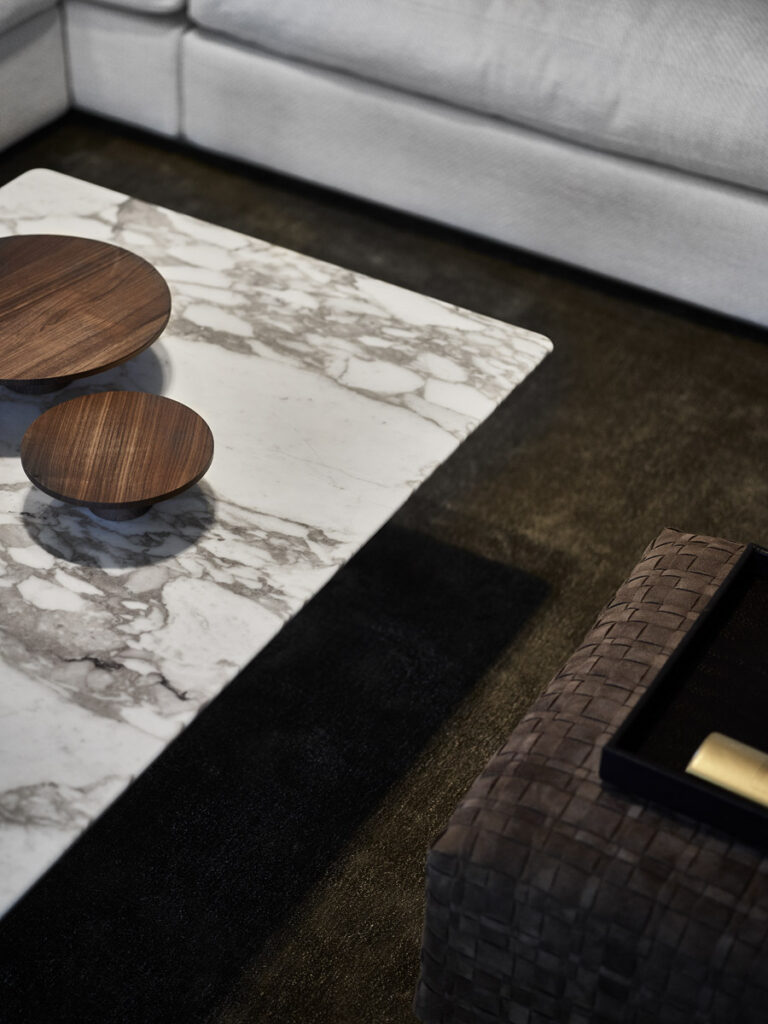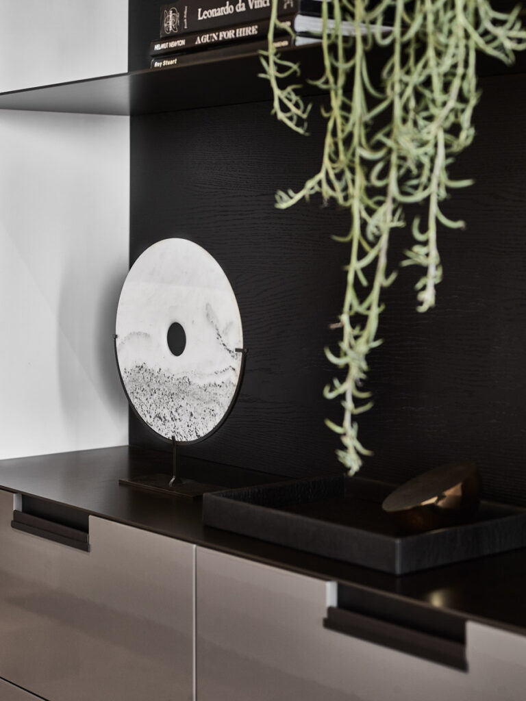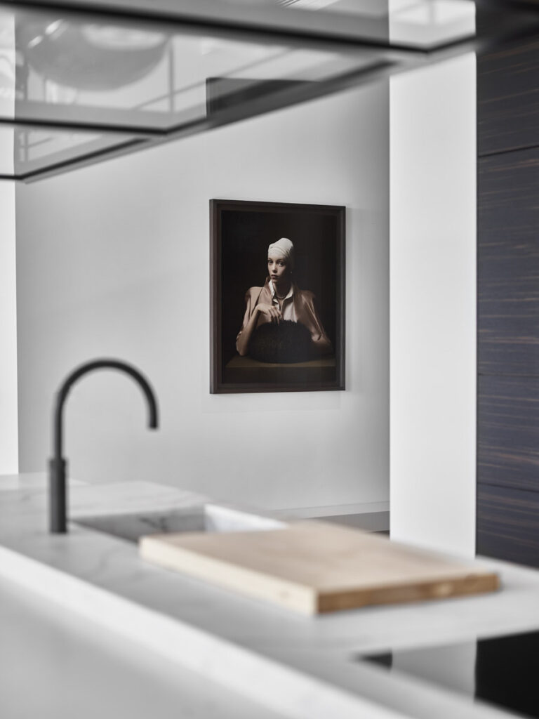 Alles is maatwerk. De deuren, de haard, de keuken, alles is met aandacht tot in detail ontworpen. Het lichtplan, het gebruik van de materialen, de kunst, niets is aan het toeval overgelaten.