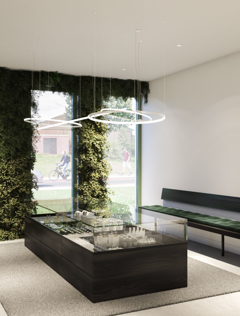 We hebben een ontwerp gemaakt voor de entree, balie en algemene ruimtes. Fris, hygiënisch en spierwit. Balie, hoekkantoor en bergkasten lopen rond, om de strenge technische omgeving wat zachter te maken. Gecombineerd met veel levend groen ontstaat zo een vriendelijke en welkome ontvangst. Door gebruik te maken van natuurstenen kamernummering, high-end kranen en verlichting voelt men een luxe beleving die een patiënt zelden bij de tandarts ervaart.
